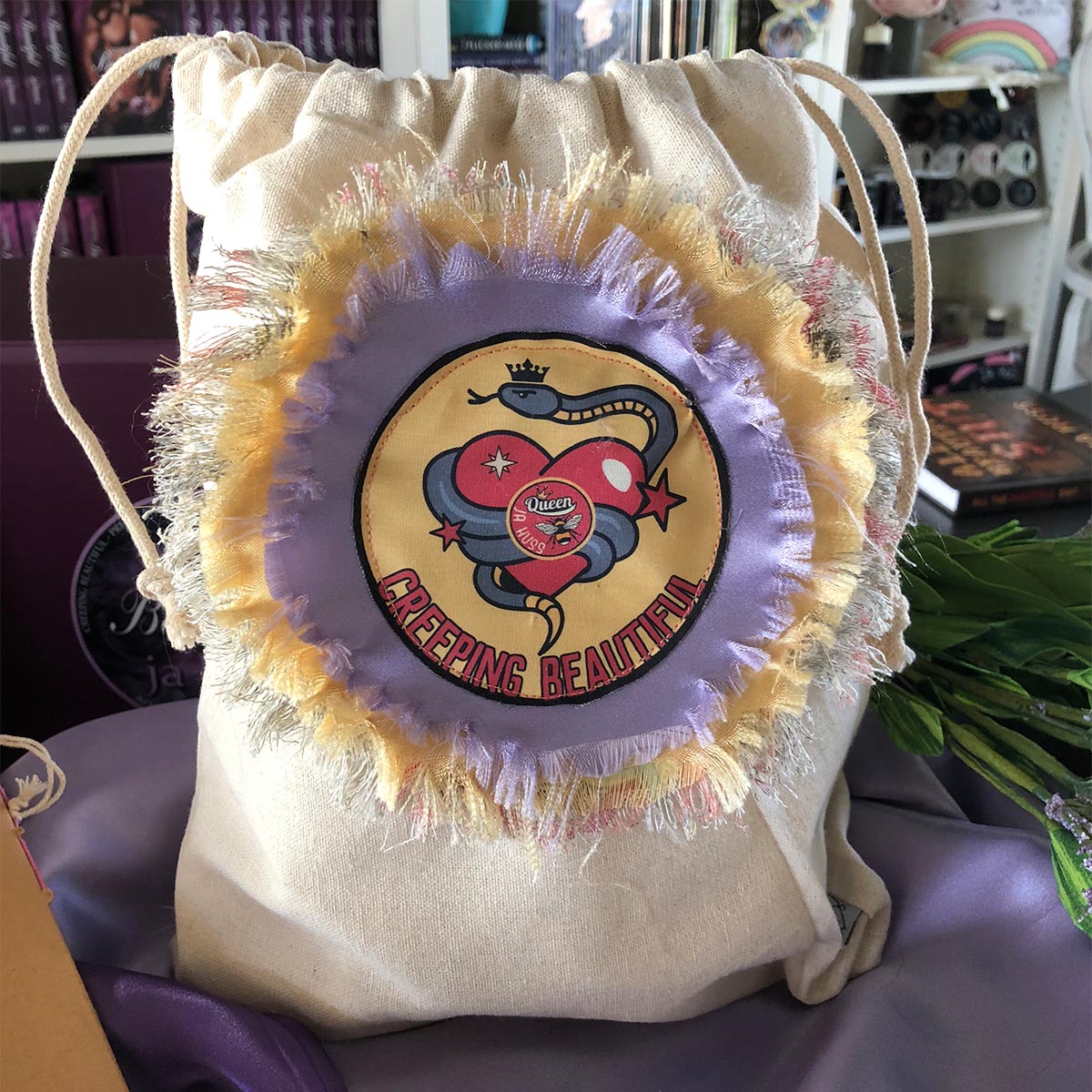 Custom hand-embellished drawstring bags